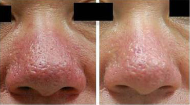 激光治疗酒糟鼻是利用其选择性光热吸收的原理,激光对于血管中红细胞内的血红蛋白有特异性的吸收作用,当其照射鼻部时,激光的能星被特异性吸收。从而击破、溶解色素,刺激胶原纤维再生,达到治疗酒糟鼻的目的。