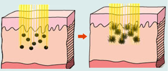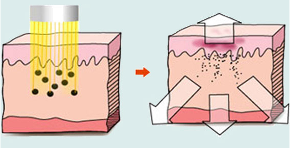 特定波长激光作用于皮肤深层组织,利用激光瞬间产生的“微爆破”,准确击碎老年斑色素,将其排除体外,使肌肤重获美丽容颜。