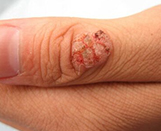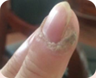 指(趾)甲周或甲下出现寻常疣症状,其根部常位于甲廓内。侵袭皮肤时出现典型的赘疣状损害。若向甲下蔓延,则破坏甲的生长发生继发感染。