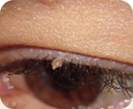 丝状疣好发于眼睑、颈、颏部等处,为单个细软的丝状突起。指状疣常发生于头皮或趾间,亦可发生于面部,其尖端为角质样物。